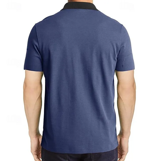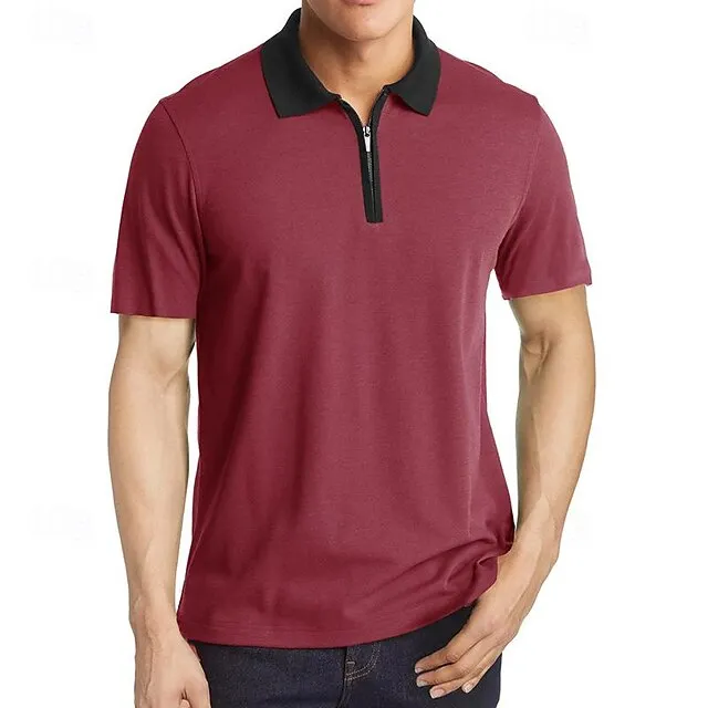Men’s Quarter Zip Polo Golf Shirt Daily Holiday Quarter Zip Short Sleeve Fashion Basic Color Block Patchwork Spring & Summer Regular Fit Black White Wine Royal Blue Blue Army Green Quarter Zip Polo