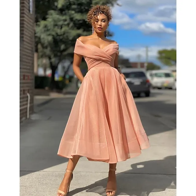 – Off shoulder design adds a fashionable and sexy touch to the dress