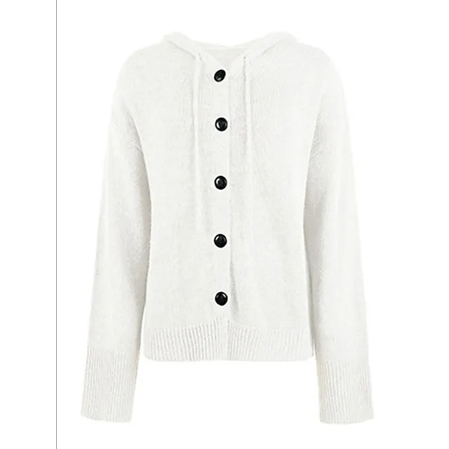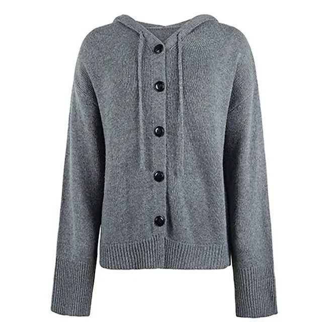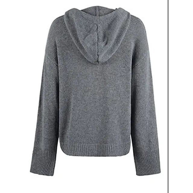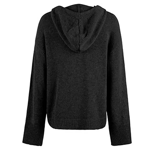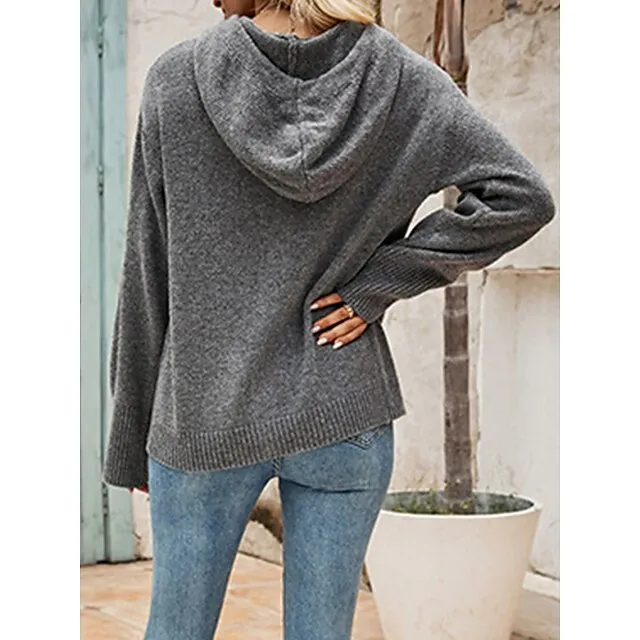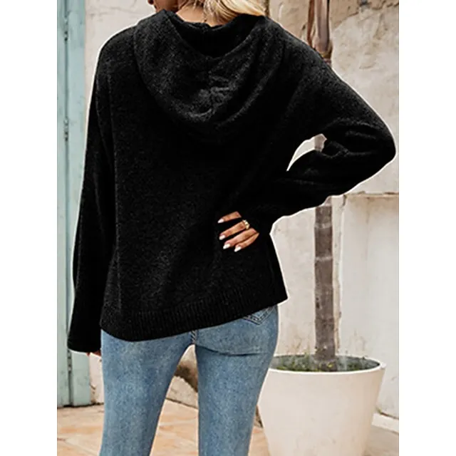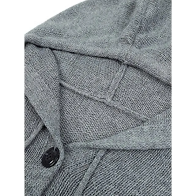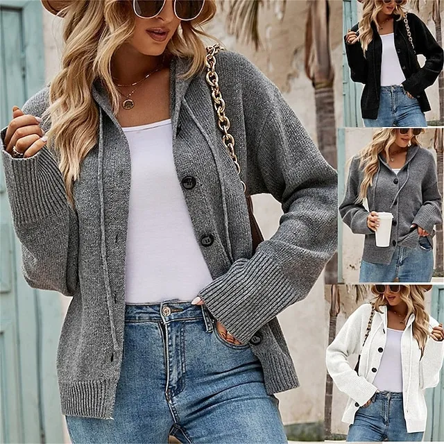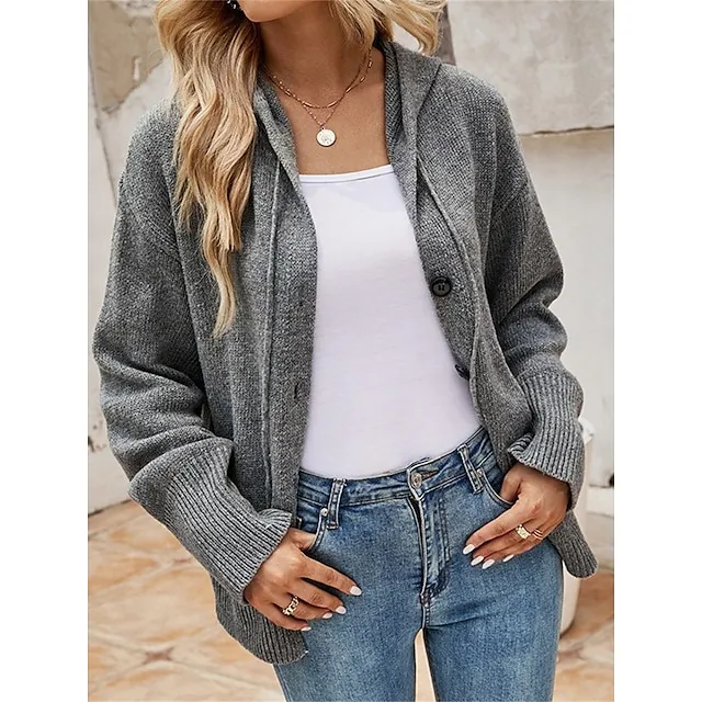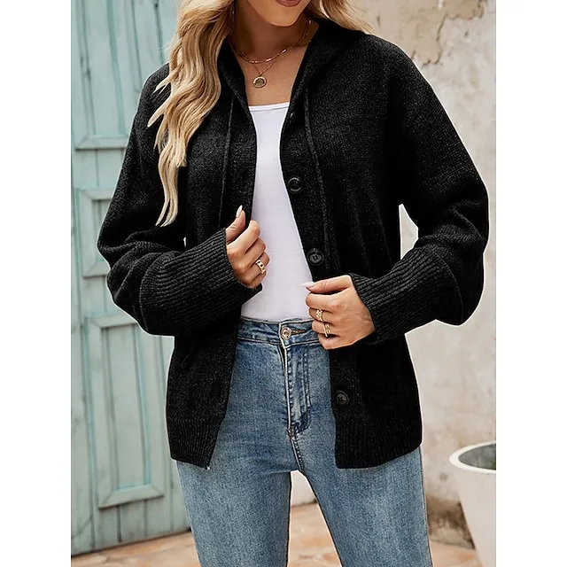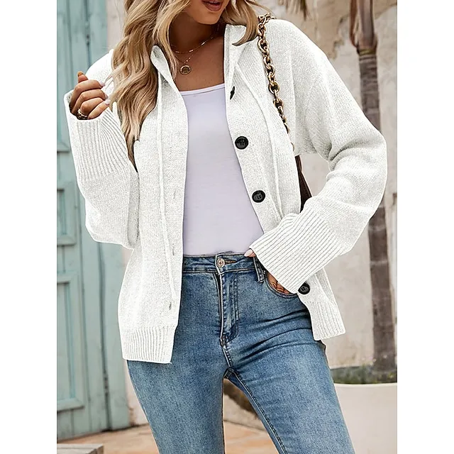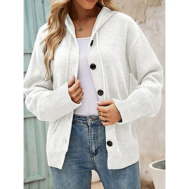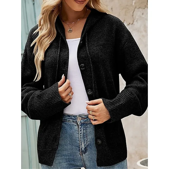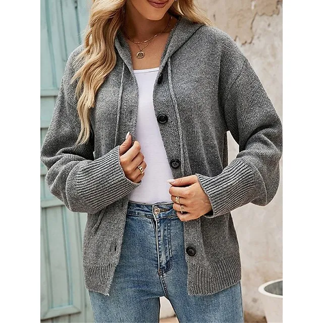 Women’s Cardigan Sweater Hooded Ribbed Knit Alpaca Wool Button Fall Winter Regular Outdoor Daily Going out Stylish Casual Soft Long Sleeve Solid Color Black White Gray S M L