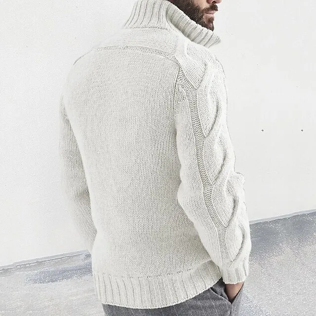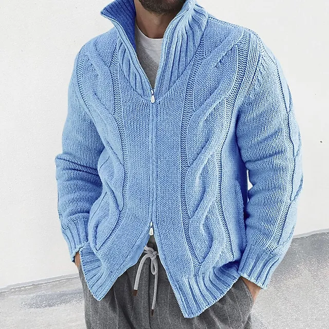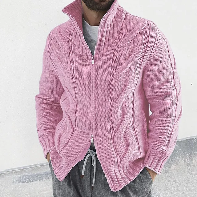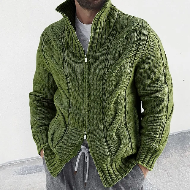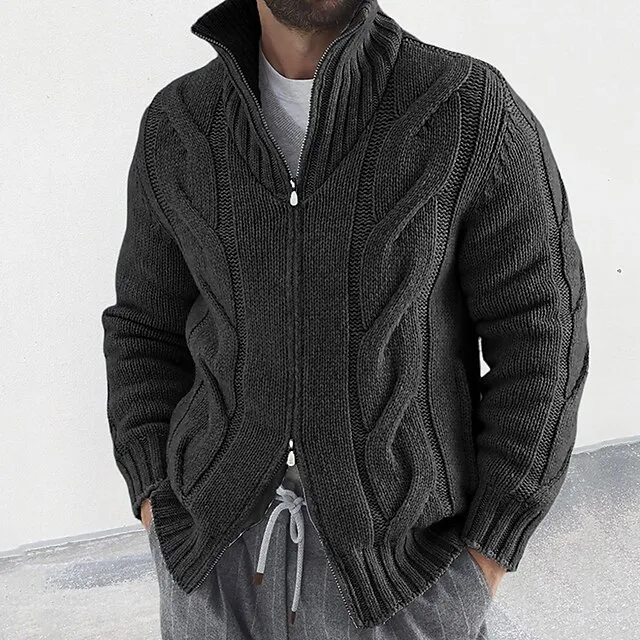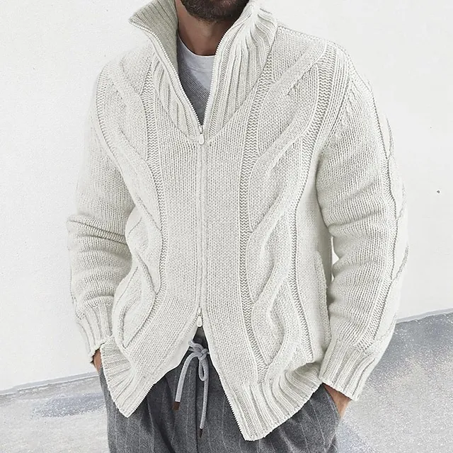 Men’s Cardigan Sweater Zip Sweater Cropped Sweater Cable Knit Regular Knitted Vintage Plain Stand Collar Warm Ups Modern Contemporary Daily Wear Going out Clothing Apparel Winter Black White M L XL