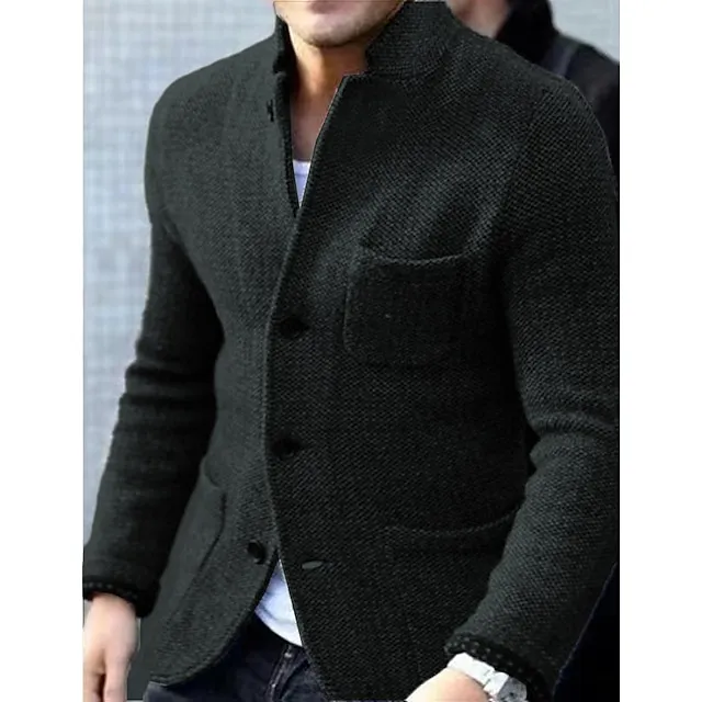 – Features a stylish stand collar neckline.