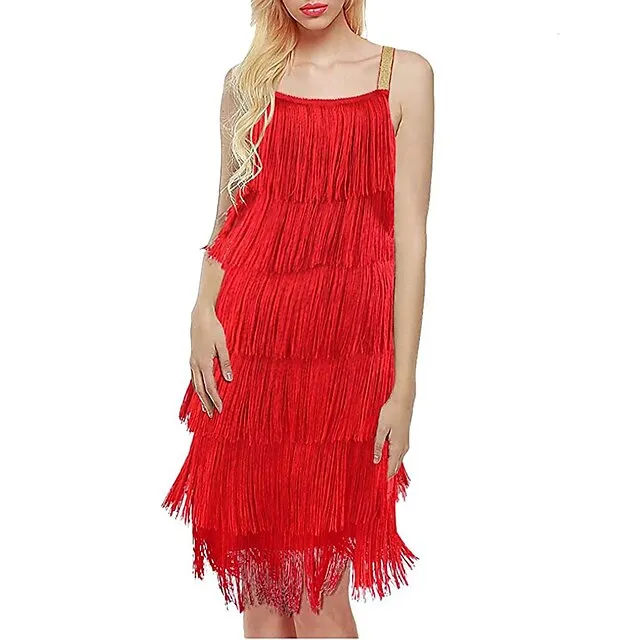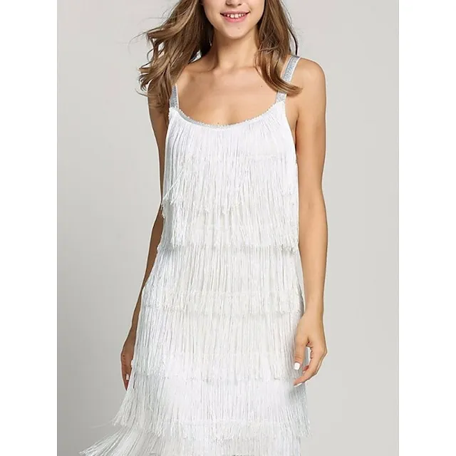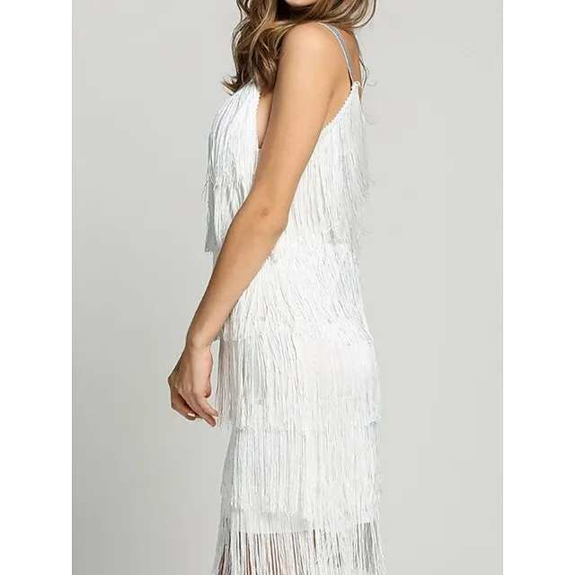 Women’s Black Sequin Dress Fringe Dress Party Dress Sparkly Dress Cocktail Dress Midi Dress Black White Red Sleeveless Tassel Fall Winter Spaghetti Strap Fashion