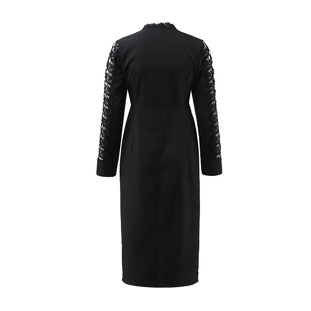 Women’s Party Dress Black Dress Lace Dress Work Dress Midi Dress Black White Long Sleeve Pure Color Lace Fall Winter V Neck Fashion Winter Dress Office Fall Dress