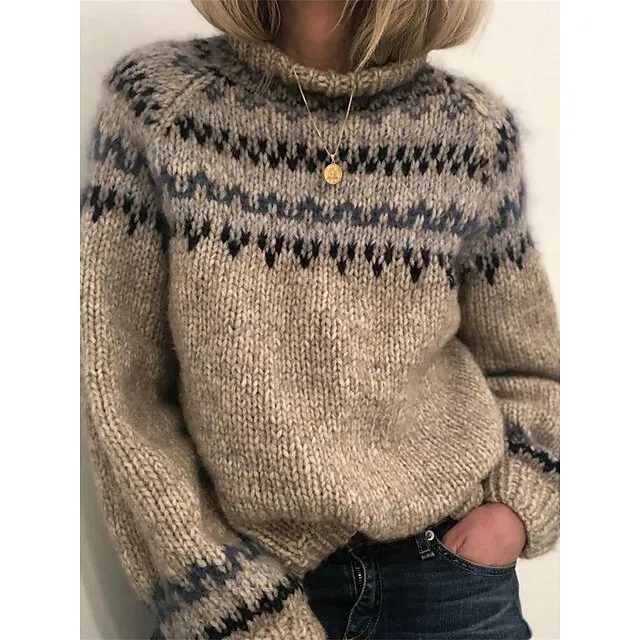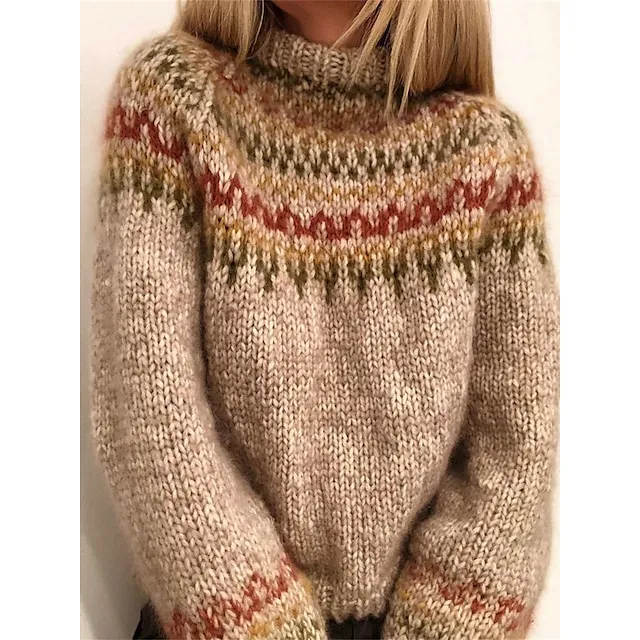 Women’s Pullover Sweater Jumper Stand Collar Ribbed Knit Wool Stripe Fall Winter Regular Outdoor Daily Going out Stylish Casual Soft Long Sleeve Striped Beige S M L