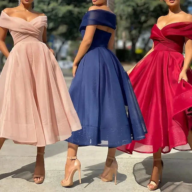 – Off shoulder design adds a fashionable and sexy touch to the dress