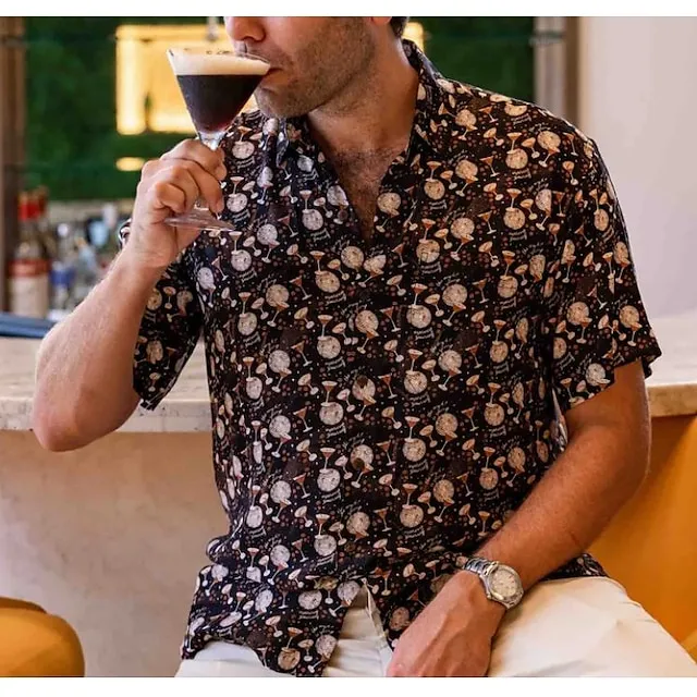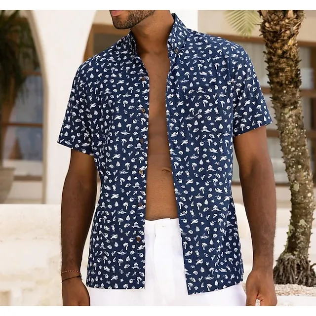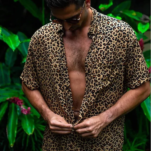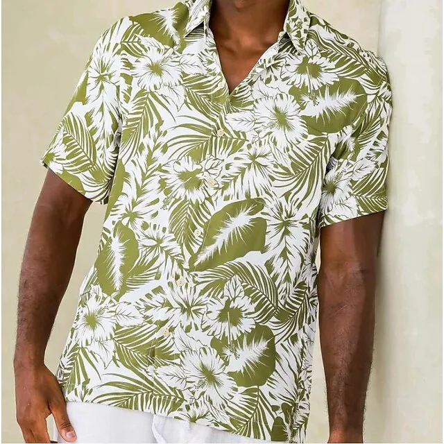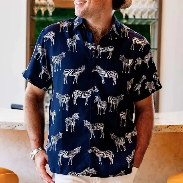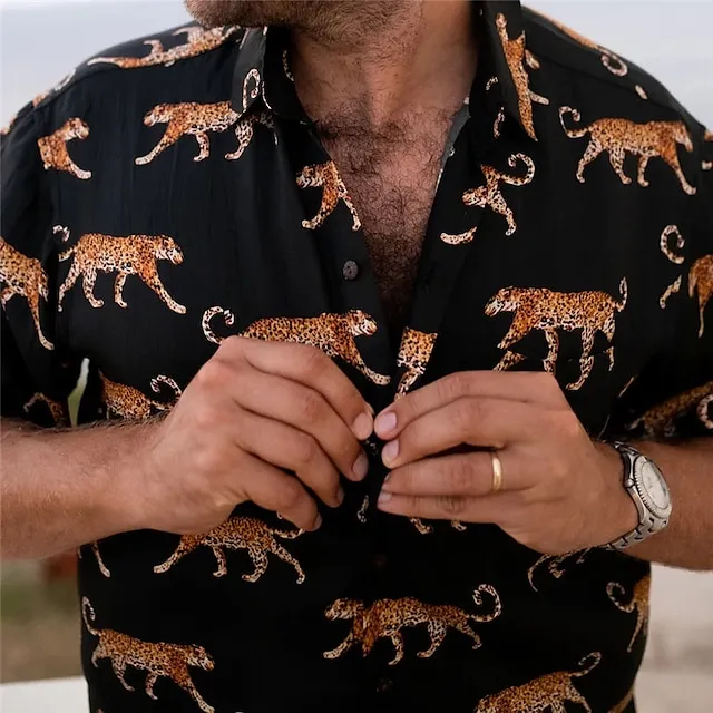 Men’s Shirt Animal Leopard Graphic Prints Turndown Black Brown Green Khaki Blue+Blue Outdoor Street Short Sleeves Button-Down Print Clothing Apparel Tropical Fashion Hawaiian Designer