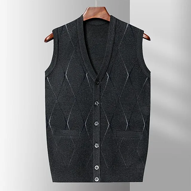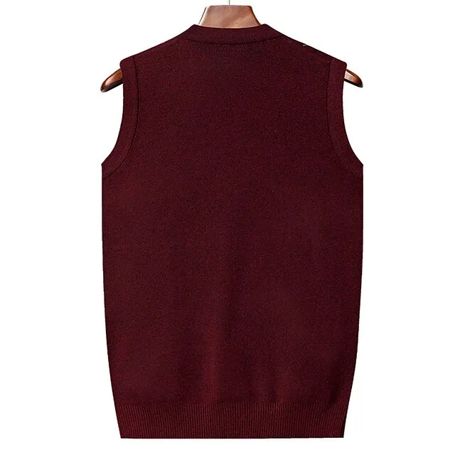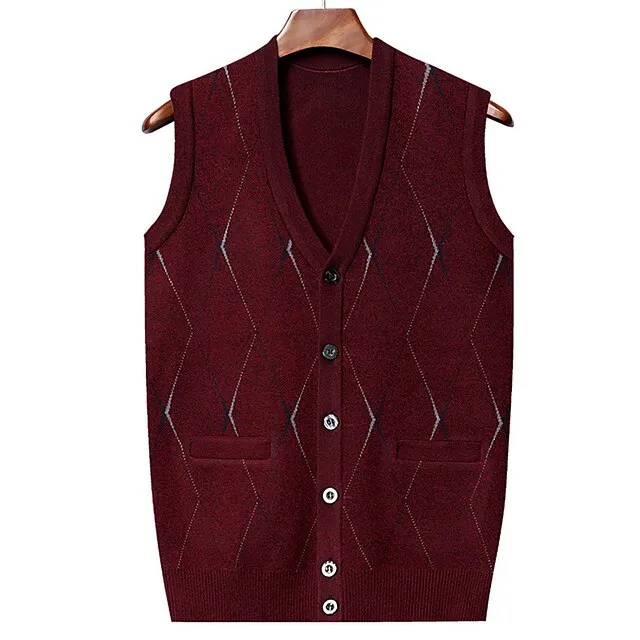 Men’s Sweater Sweater Vest Wool Sweater Cashmere Cardigan Sweater Ribbed Knit Regular Pocket Knitted Rhombus V Neck Warm Ups Modern Contemporary Daily Wear Going out Clothing Apparel Winter Wine Red